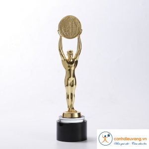 Cúp pha lê tượng người đỡ quả cầu Chất liệu: pha lê, kim loại Công nghệ: in khắc nội dung theo yêu cầu Sản phẩm đựng trong hộp xi lót lụa Giao hàng toàn quốc