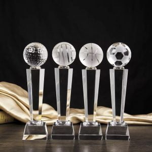 Cúp pha lê giả bóng đá, Golf, bóng bàn, tennis Chất liệu: pha lê Công nghệ: in khắc nội dung theo yêu cầu Sản phẩm đựng trong hộp xi lót lụa Giao hàng toàn quốc