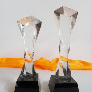 Cúp pha lê thân xoắn Chất liệu: pha lê Công nghệ: in khắc nội dung theo yêu cầu Sản phẩm đựng trong hộp xi lót lụa Giao hàng toàn quốc