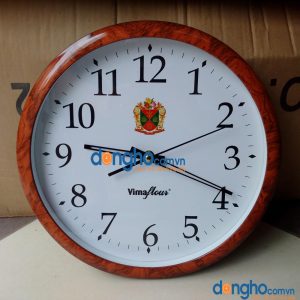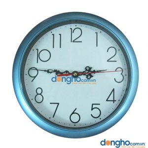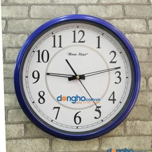 Đồng hồ treo tường Newstar hình tròn Kích thước: đường kính 31cm Màu sắc: vành có 3 màu là xanh, nghi trắng, nâu gỗ Công nghệ: in nội dung logo và chữ lên mặt đồng hồ...