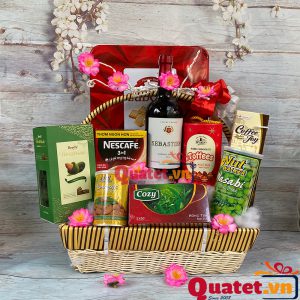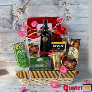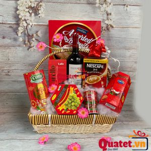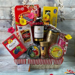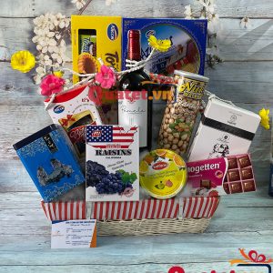 STT Danh mục Định Lượng Đơn Vị Xuất xứ1 Vang Pamela 750ml Chai Tây ban nha2 Bánh Merry 333g Hộp Việt nam3 Kẹo Butter Toffees 180g Hộp Mexico4 Nho khô Raisin 140g Hộp Ấn...
