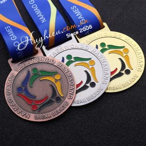 Huy chương thể thao Công nghệ: Hợp kim đồng đúc khuôn, dập nổi, ăn mòn, in màu nội dung theo yêu cầu Có dây đeo và hộp đựng theo yêu cầu