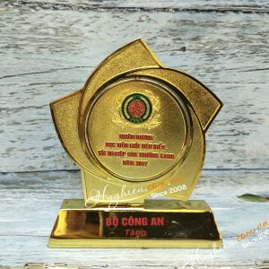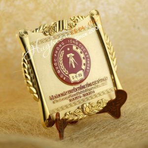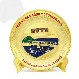 Kỷ niệm chương đĩa đồng mạ vàng Chất liệu: Hợp kim đồng mạ vàng Công nghệ: ăn mòn, đúc nổi logo và chữ Mỗi sản phẩm đựng trong 1 hộp xi lót lụa