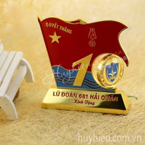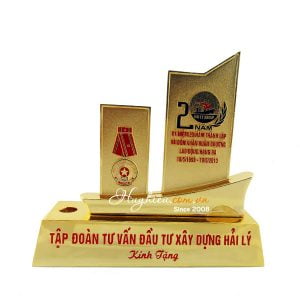 Biểu trưng gỗ đồng để bàn Chất liệu: gỗ, đồng Công nghệ: ăn mòn, dập nổi Mỗi sản phẩm đựng trong 1 hộp xi lót lụa