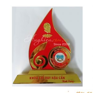 Kỷ niệm chương đồng ngọn lửa đỏ Chất liệu: Hợp kim đồng mạ vàng Công nghệ: ăn mòn, đúc nổi logo và chữ Mỗi sản phẩm đựng trong 1 hộp xi lót lụa