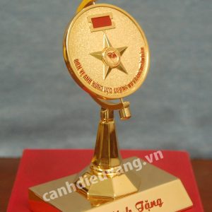 Kỷ niệm chương đồng cờ đỏ Chất liệu: Hợp kim đồng mạ vàng Công nghệ: ăn mòn, đúc nổi logo và chữ Mỗi sản phẩm đựng trong 1 hộp xi lót lụa
