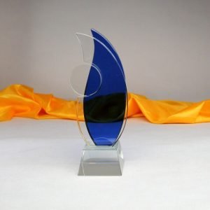 Biểu trưng pha lê ngọn lửa xanh Chất liệu: pha lê trong Kích thước: theo yêu cầu Công nghệ: in, khắc nội dung Mỗi sản phẩm dựng trong 1 hộp xi lót lụa