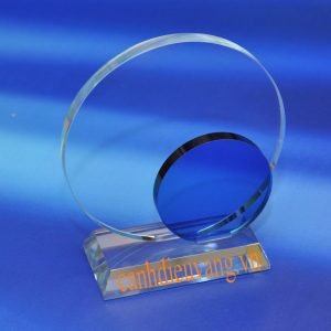 Biểu trưng pha lê tấm tròn đế cúp Chất liệu: pha lê trong Kích thước tấm: 10cm, 12cm Công nghệ: in, khắc nội dung theo yêu cầu