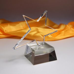 Biểu trưng pha lê ngôi sao Chất liệu: pha lê trong Công nghệ: in khắc nội dung theo yêu cầu