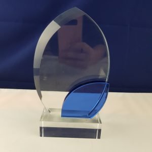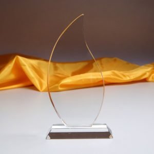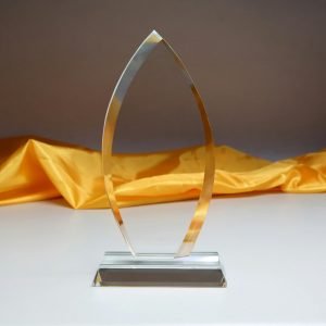 Biểu trưng pha lê hình chiếc lá dài Chất liệu: pha lê trong Kích thước:cao 175mm Công nghệ: in, khắc nội dung