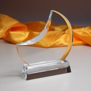 Biểu trưng pha lê trăng lưỡi liềm Chất liệu: pha lê trong Kích thước: theo yêu cầu Công nghệ: in, khắc nội dung