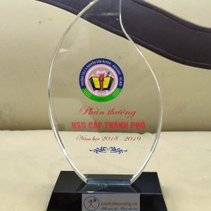 Biểu trưng pha lê Chất liệu: pha lê trong Kích thước: cao 15-18cm Công nghệ: in, khắc nội dung
