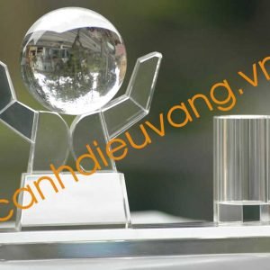 Bộ để bàn pha lê bàn tay đỡ quả cầu Chất liệu: pha lê trong Công nghệ: in, khắc nội dung theo yêu cầu Hộp đựng: hộp xi lót lụa