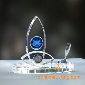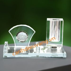 Bộ để bàn pha lê đồng hồ mắt Công nghệ: in khắc nội dung theo yêu cầu Họp đựng: hộp xi lót lụa