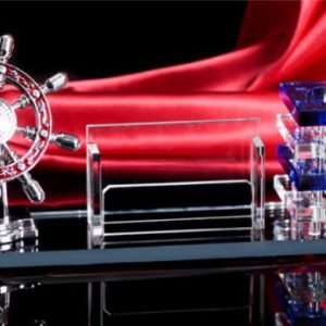 Bộ để bàn pha lê bánh lái Chất liệu: pha lê trong Công nghệ: in, khắc nội dung theo yêu cầu