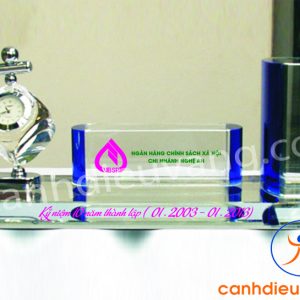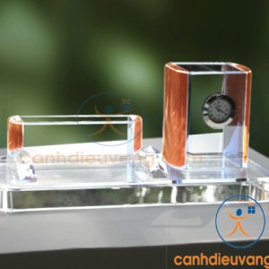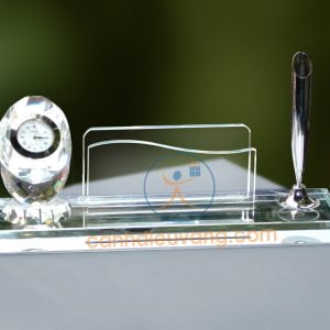 Bộ để bàn pha lê Chất liệu: pha lê trong Công nghệ: in, khắc nội dung