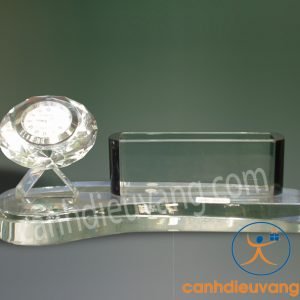Bộ để bàn pha lê cầu pha lê cắm bút có đồng hồ Công nghệ: in khắc nội dung theo yêu cầu